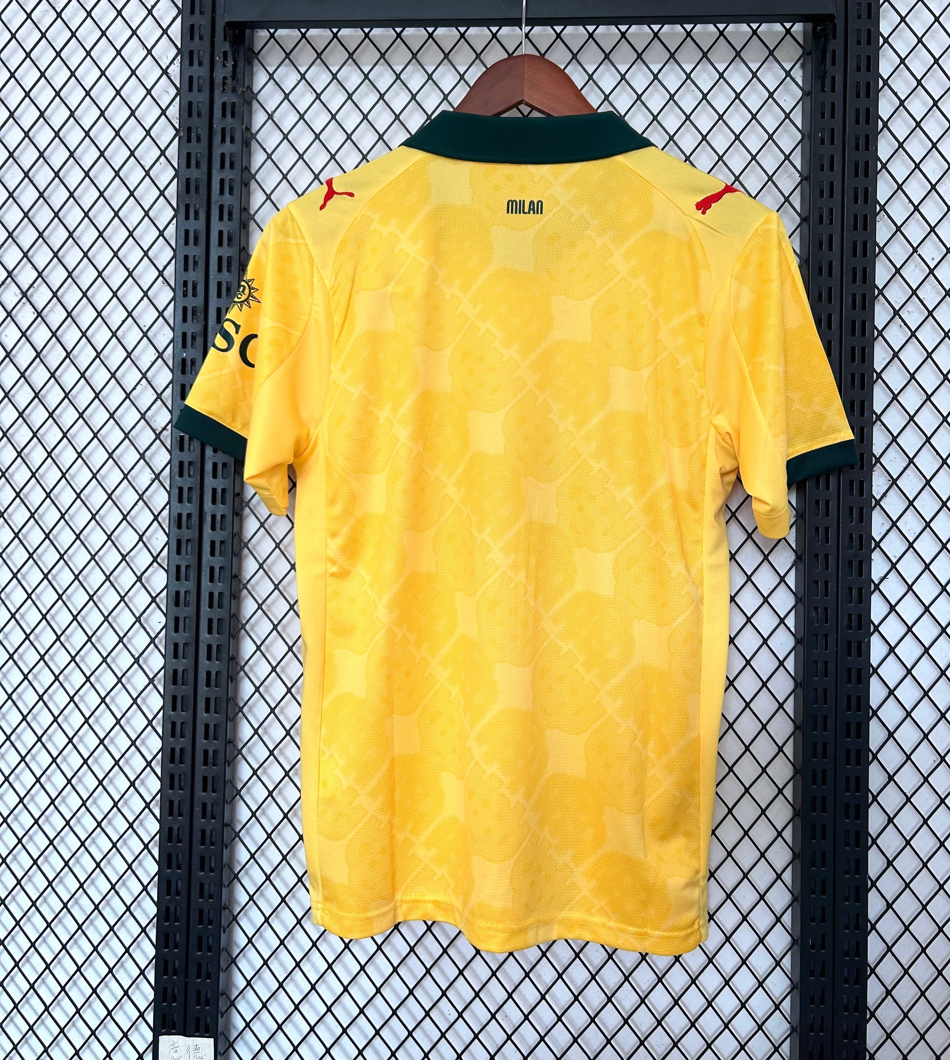 La “visita” del Milan para la temporada 25/26 no se anda con rodeos. Esta camiseta mezcla el legado con un guiño audaz al símbolo histórico del “biscione” (serpiente milanesa), envolviéndose en un tono amarillo vibrante nunca antes tan protagonista.