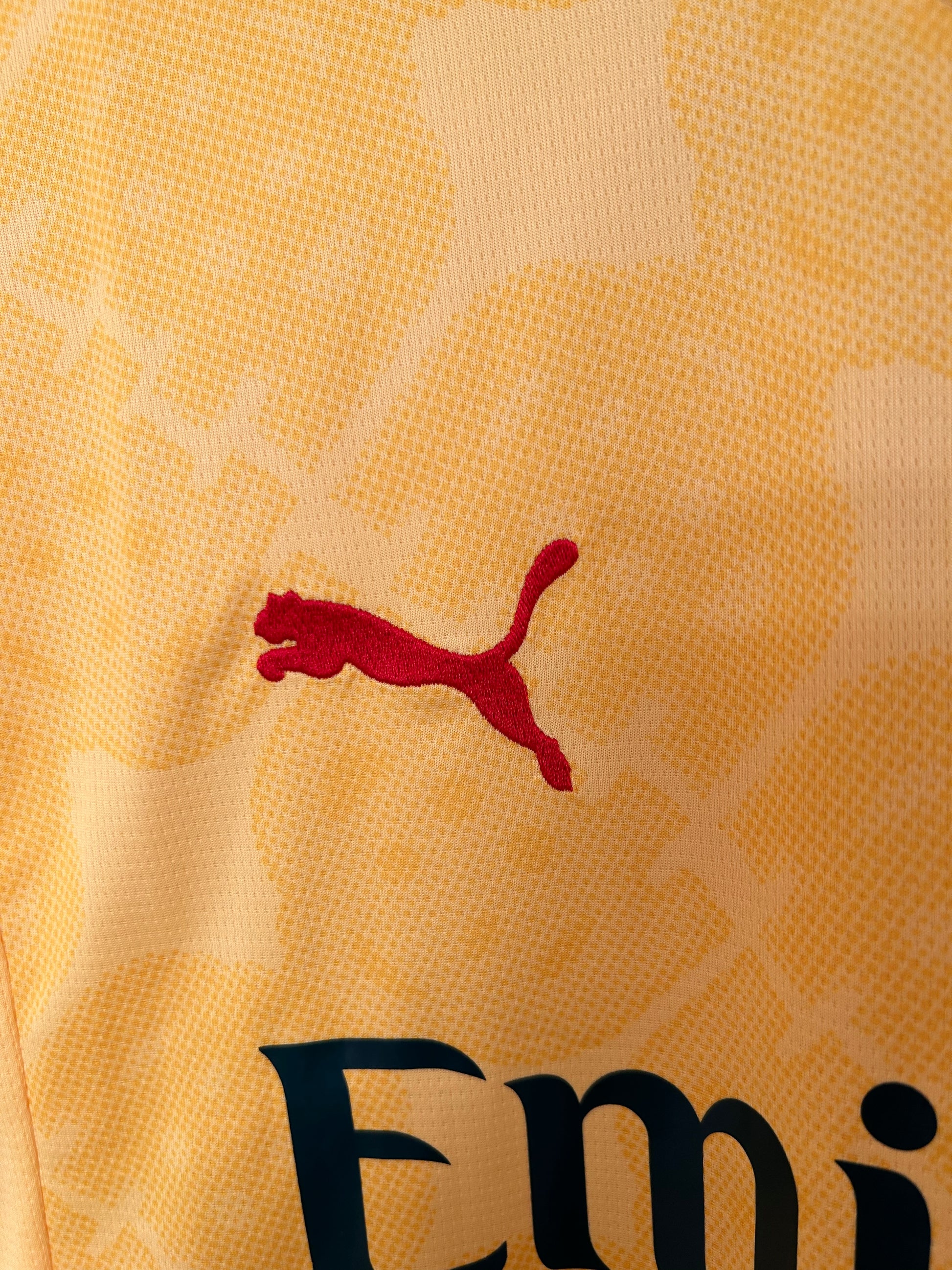 Logos de Puma y Emirates en verde oscuro, refinados y bien integrados