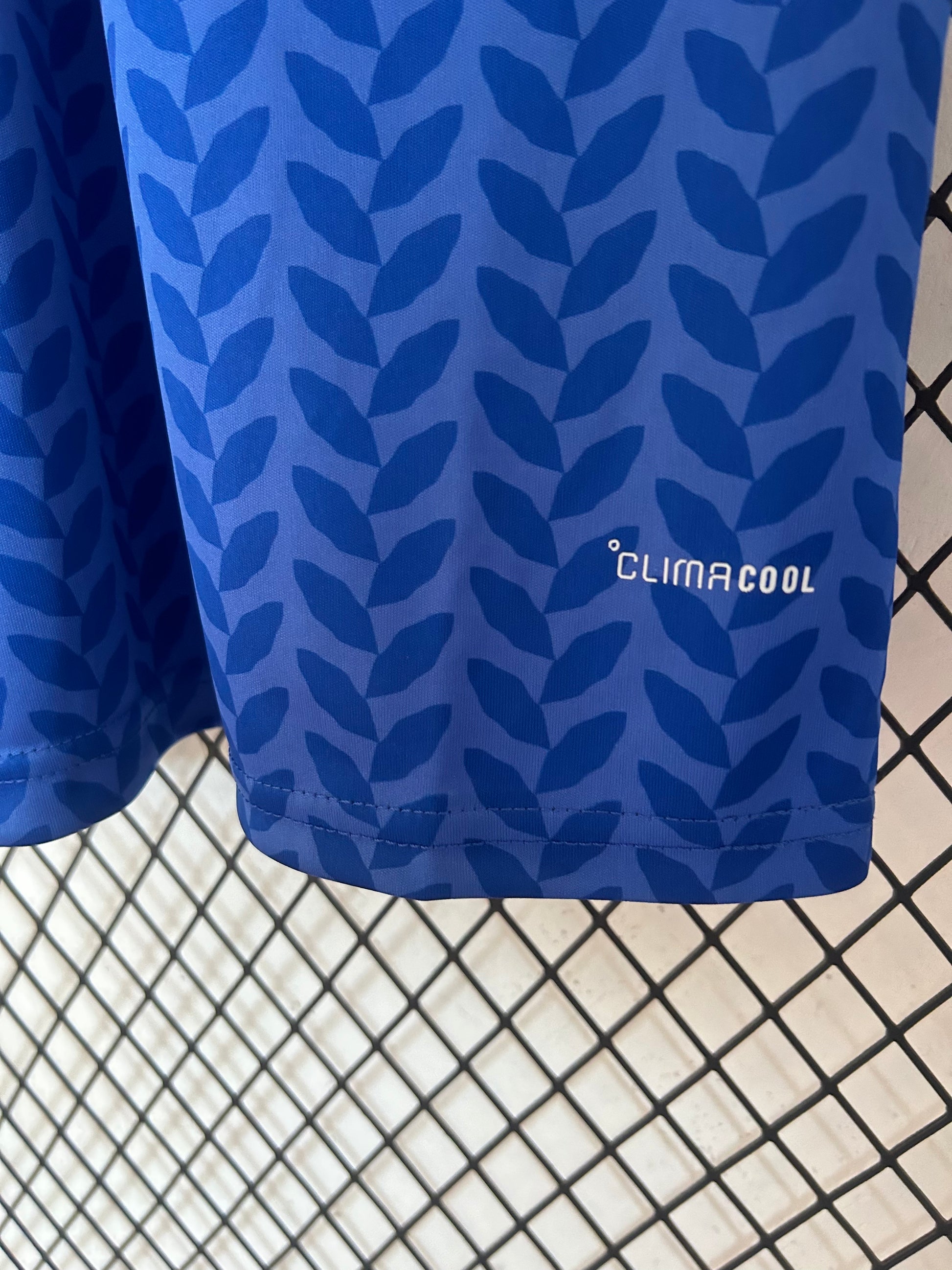 El clásico azul italiano se combina con un patrón texturizado moderno y detalles en dorado, creando un diseño sofisticado que mantiene la esencia histórica de la selección.
