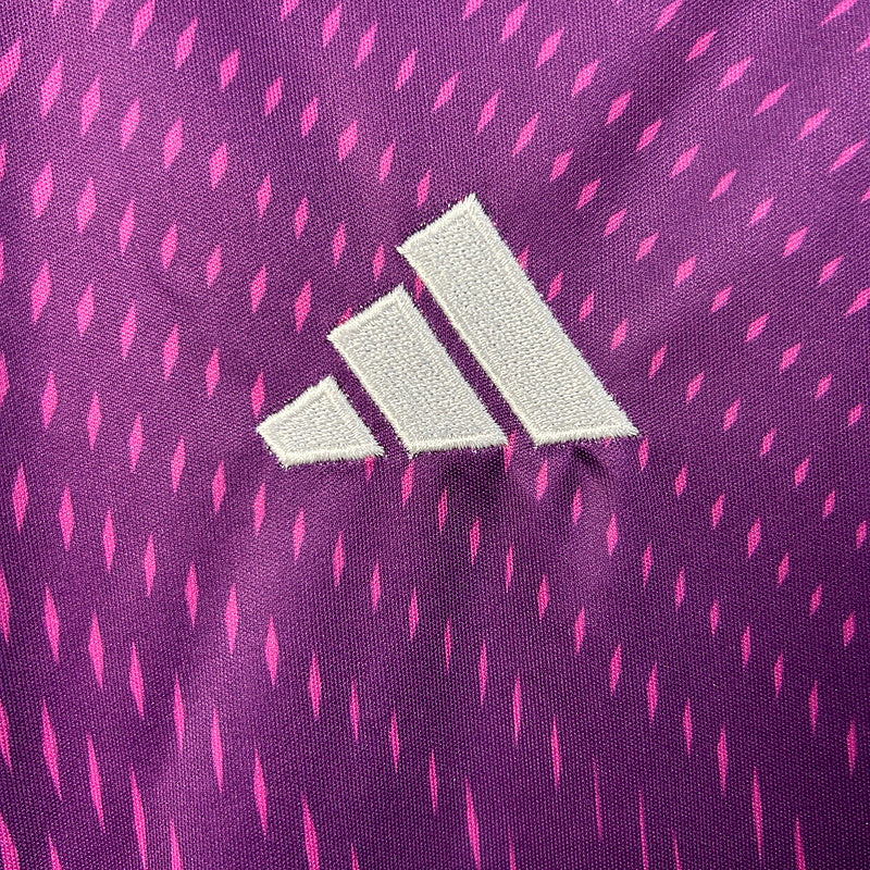 Protege la portería con estilo con la camiseta oficial de portero del Real Madrid para la temporada 2025/26. Diseñada por Adidas, presenta un llamativo color morado con un patrón hipnótico en la parte frontal que aporta dinamismo y modernidad. El escudo bordado del club y el patrocinador “Emirates Fly Better” destacan en blanco, creando un contraste elegante. Fabricada con tecnología AEROREADY, ofrece transpirabilidad, ligereza y libertad de movimiento, perfecta para rendir al máximo en cada partido.