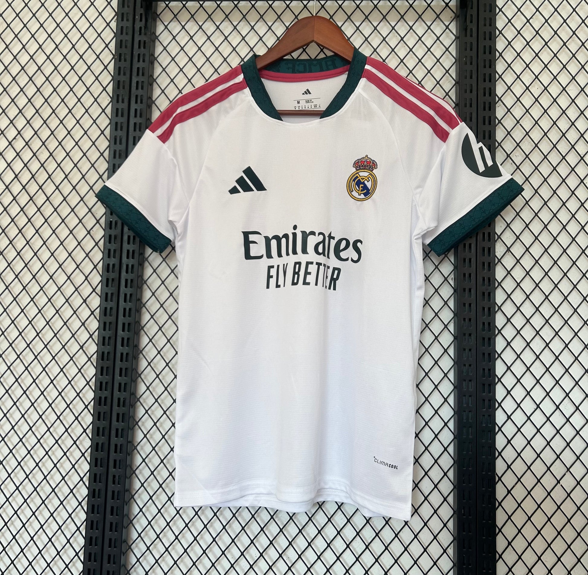 El escudo del Real Madrid se presenta bordado en el pecho junto al logotipo de Adidas y el patrocinador Emirates Fly Better, creando una estética limpia y reconocible en todo el mundo. Fabricada con tejido técnico ligero y transpirable, esta camiseta garantiza comodidad, frescura y libertad de movimiento tanto dentro como fuera del campo.