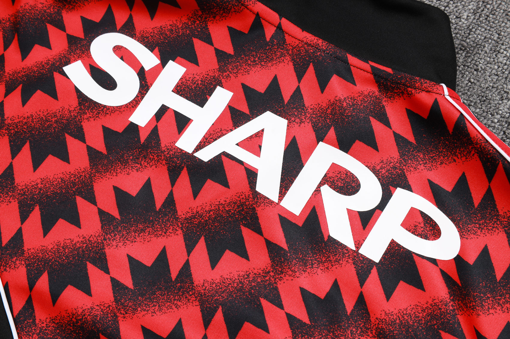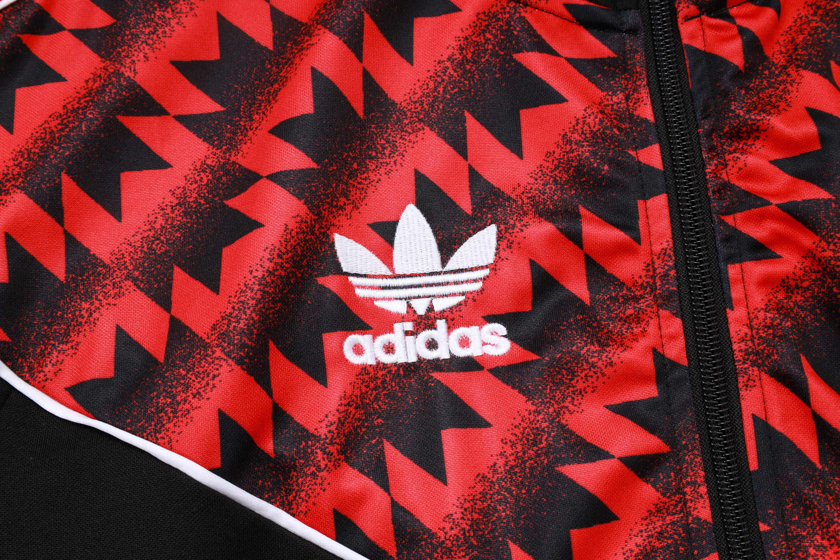 🔹 Detalles: Escudo bordado del Manchester United, logo Adidas Trefoil, patrón geométrico clásico en el pecho