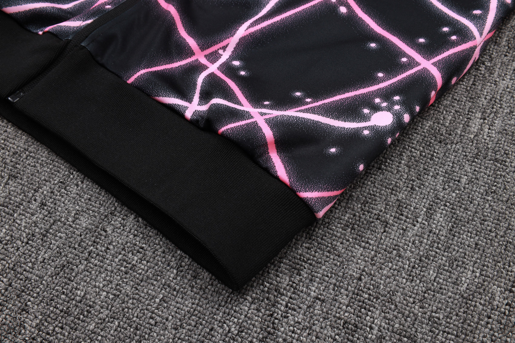 Destaca con estilo parisino con este espectacular chándal del Paris Saint-Germain (PSG) en colaboración con Jordan Brand. Su diseño innovador con líneas rosas neón sobre fondo negro representa la fusión entre moda urbana y deporte de élite.
