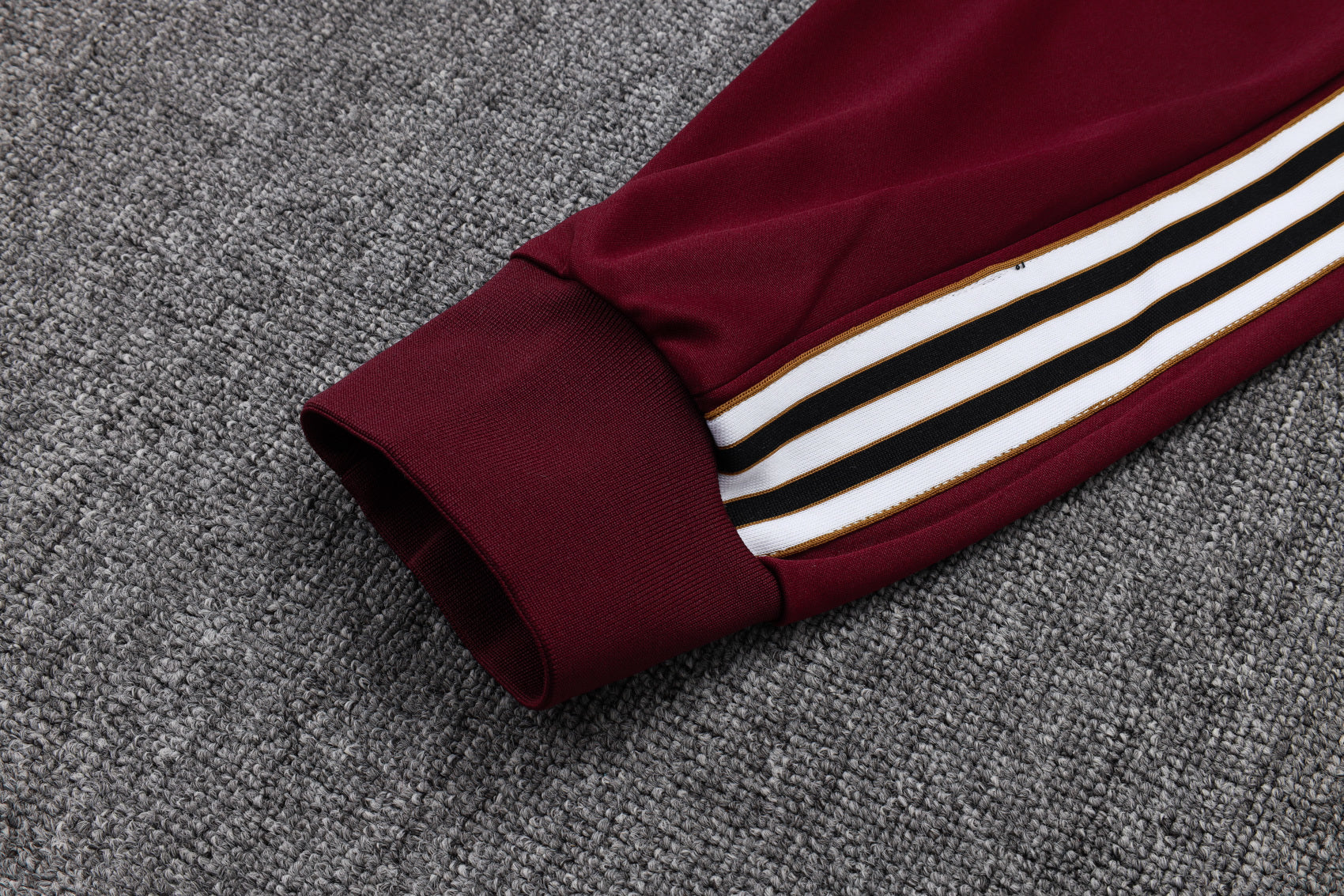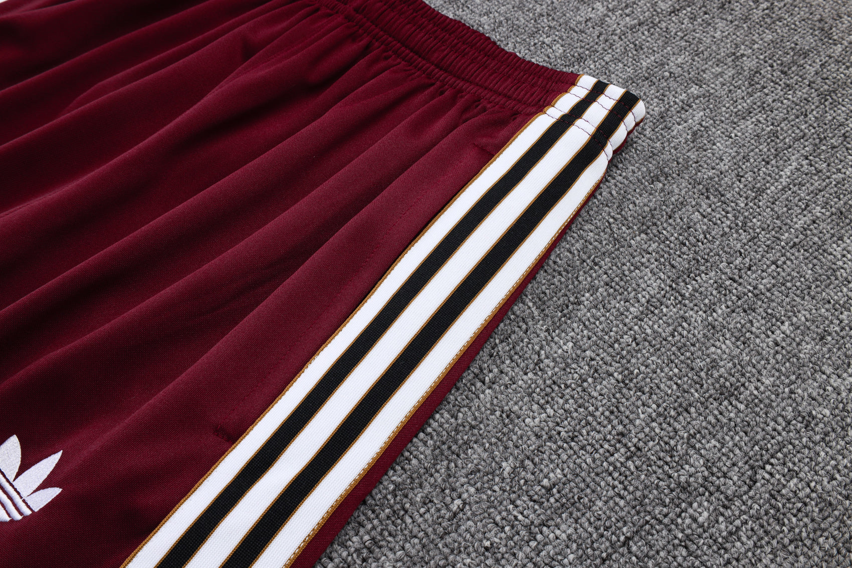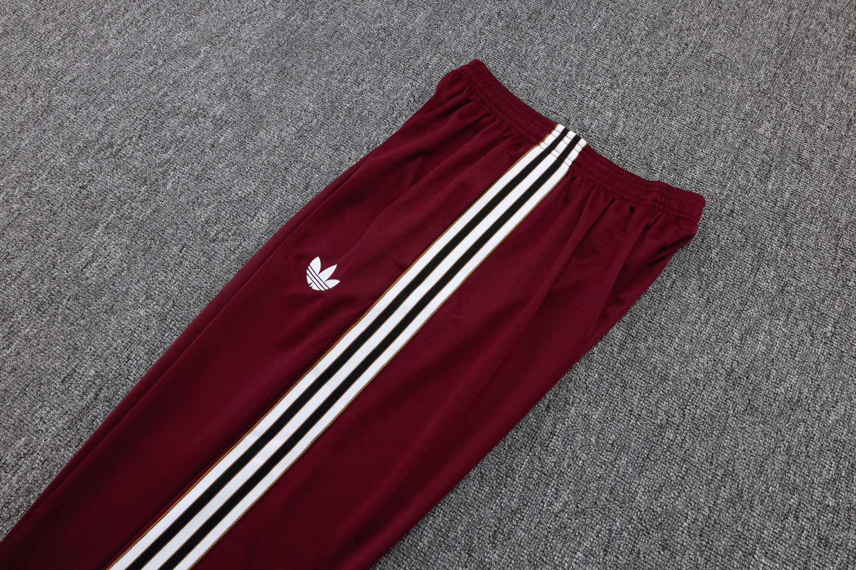 Su tono granate oscuro evoca las raíces del club neerlandés, mientras que los detalles blancos clásicos de Adidas y el escudo con las tres cruces de Ámsterdam aportan un estilo atemporal.
