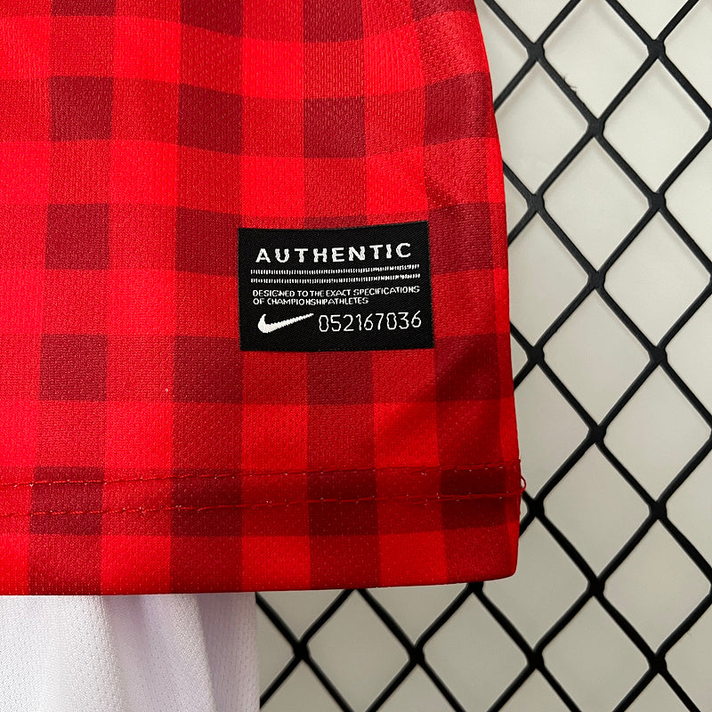 Revive la temporada 2012/13 con este uniforme infantil del Manchester United, una campaña histórica en la que el club conquistó su título número 20 de liga. Con el icónico patrón tipo tartán rojo y negro, el patrocinio de AON y la tecnología Dri-FIT de Nike, este set es perfecto para los pequeños Red Devils que quieren lucir como sus ídolos de Old Trafford.