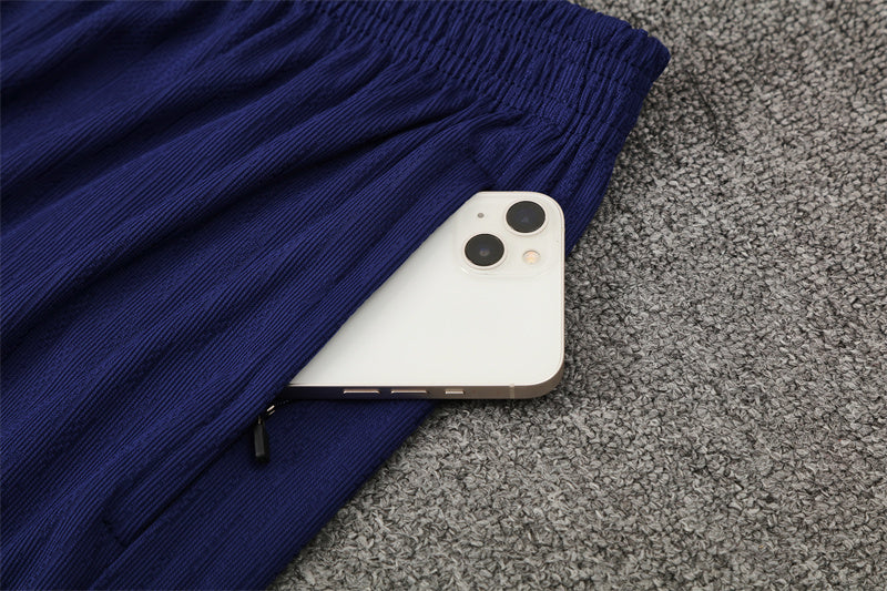 Escudo del Barça y logo Nike en azul marino.