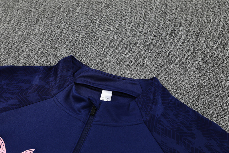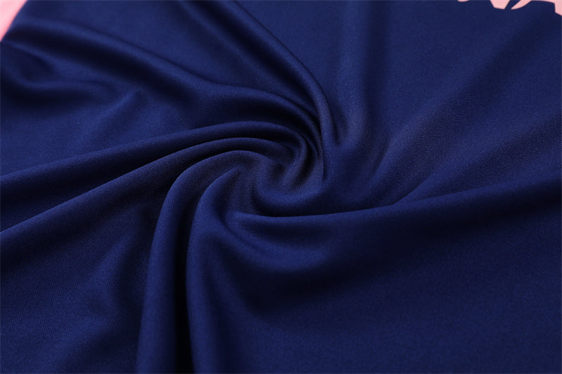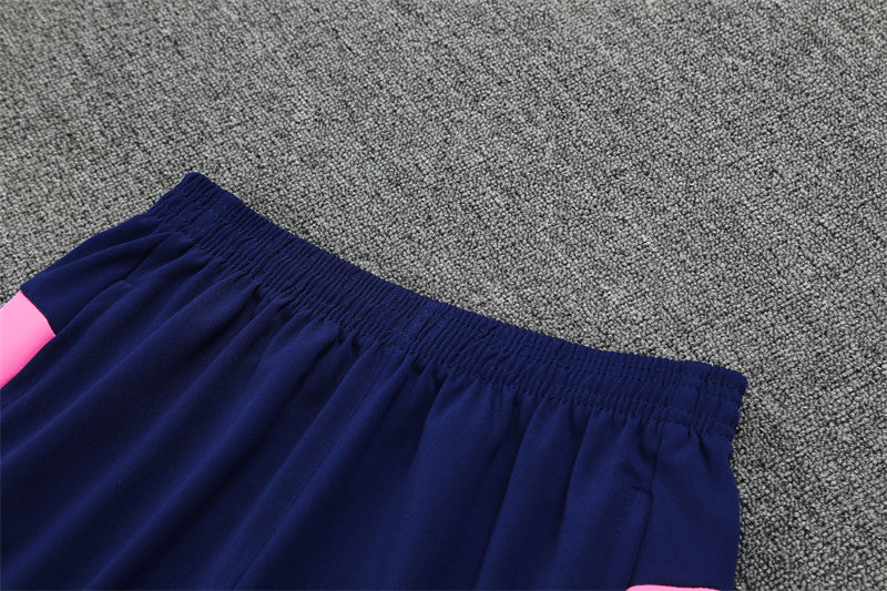 Un conjunto que combina elegancia y frescura con un contraste atrevido de azul marino y rosa, pensado para entrenar con estilo.