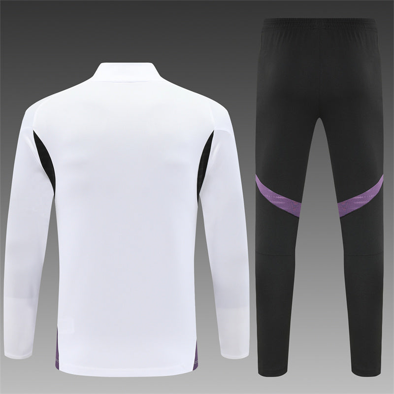 👕 Sudadera blanca con detalles en negro y morado