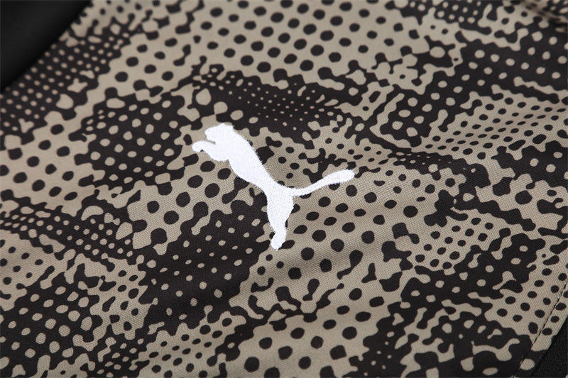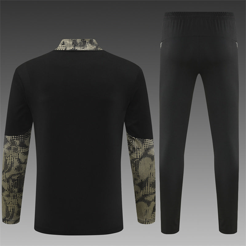 Inspirado en la fuerza y el sigilo, este conjunto combina el negro profundo con un camuflaje moderno para un look imponente dentro y fuera del campo.
