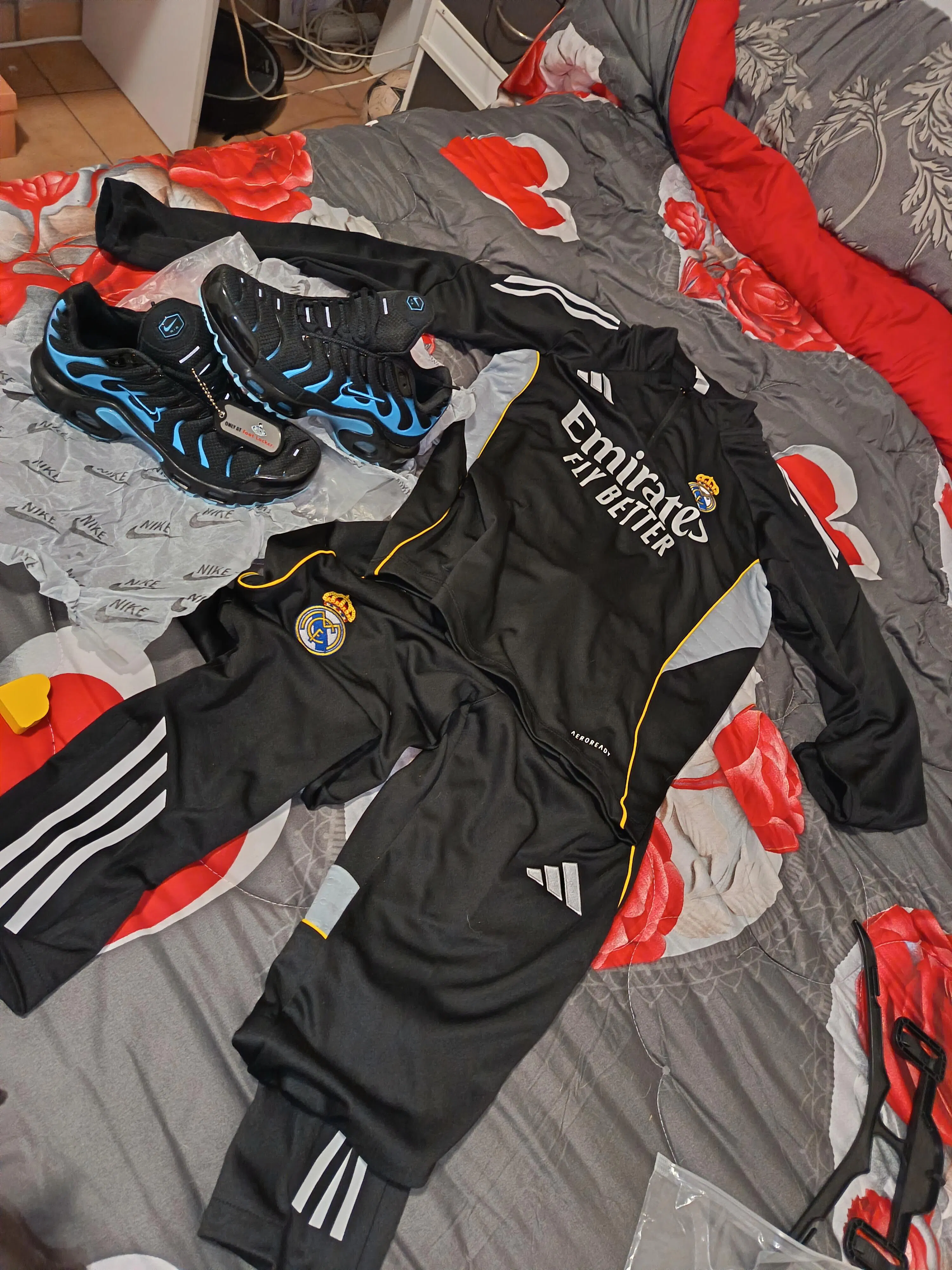 El toque de color en los contornos remata un conjunto de estética limpia, profesional y funcional, ideal para los entrenamientos previos a los grandes partidos en el Bernabéu.